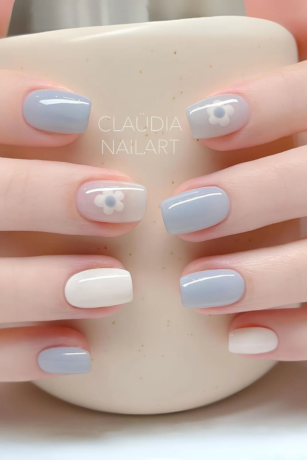 White and blue color combo? Iconic behavior. Add a white flower on the accent nails? Now we’re talking. Girlies are obsessed with simple florals—and honestly, we get it.